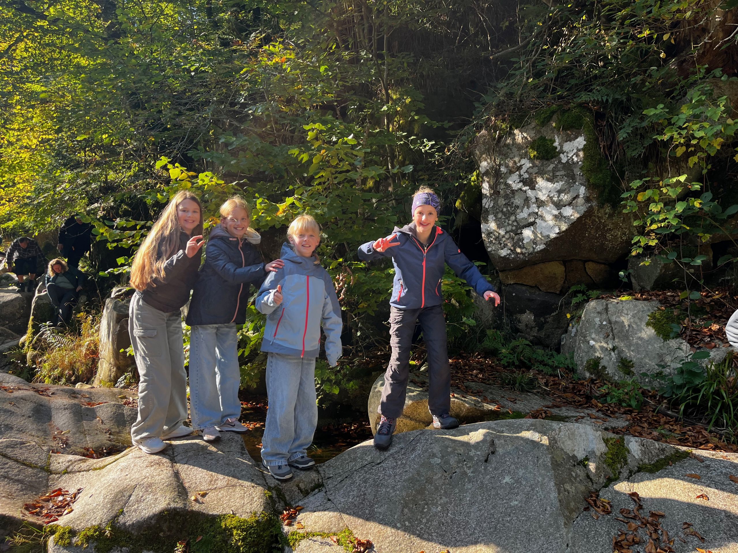 Für mich war die aufregendste Erfahrung das Flussbettwandern, weil es einfach Spaß gemacht hat von Stein zu Stein zu hüpfen. (Finn, Emil, Noah)Das Schönste war für mich, dass wir ins Schwimmbad gegangen sind, da gab es sehr viele Sachen und alle fanden es cool. (Soraia).