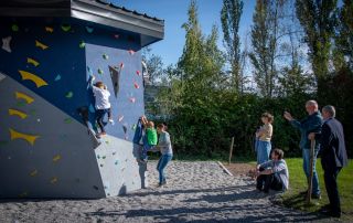 Im September 2025 war es endlich soweit: Mit der Einweihung des sanierten Sportgeländes wurde auch der neue Boulderblock in Betrieb genommen. Die lang ersehnte Kletteranlage ist also da und steht für den Sportunterricht, für die gesamte Schulgemeinde und für die Öffentlichkeit zur Verfügung.