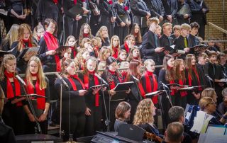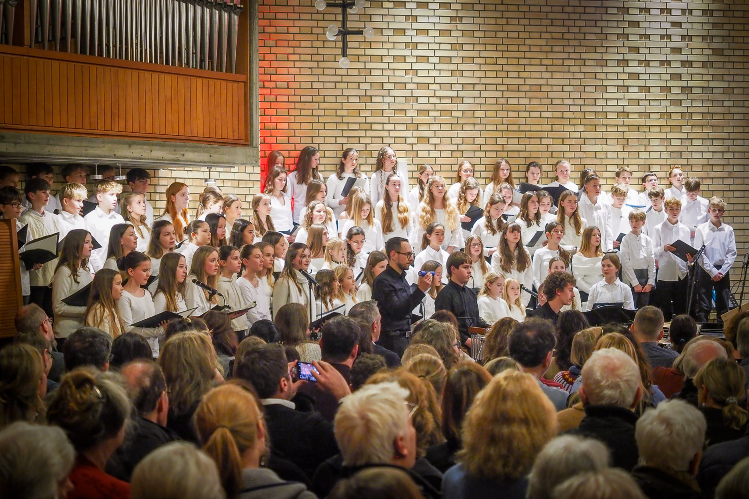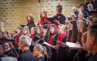 Es war mitreißend, mit welcher Begeisterung die Jüngsten dem Dirigat von Siegfried Schmidgall folgten, mit welcher Sicherheit sie ihre Lieder als Chor sowie als Solisten darboten und den Klang des Gesamtchores bereichern konnten. Die Schüler der Kantorei überzeugten als Gesangssolisten, in kleiner Ensemblebesetzung und als großer Chor, begleitet von Orchester und Band – und vermochten mit ihren jungen Stimmen dem Gesamtklang von insgesamt 220 Sängern eine ganz besondere Farbe zu geben.