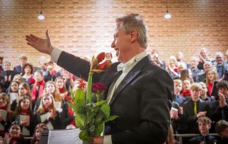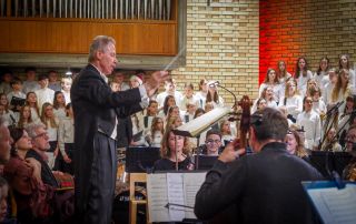 Seit 2001 besteht eine enge Zusammenarbeit zwischen dem Vokalensemble und der Schule, die nicht nur durch die festgeschriebene musikalische Partnerschaft geprägt ist, sondern vor allem durch das Engagement von Siegfried Schmidgall, dem Leiter des Vokalensembles, der als Kantor seit 1992 die kirchenmusikalischen Geschicke der Schule leitet. Chöre und Instrumentalisten folgten seinem inspirierenden Dirigat aufmerksam und voller Konzentration, rhythmisch präzise, mit sicherer Intonation – von leisestem Pianissimo bis hin zum strahlenden Forte.