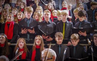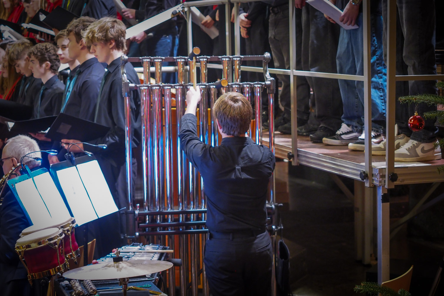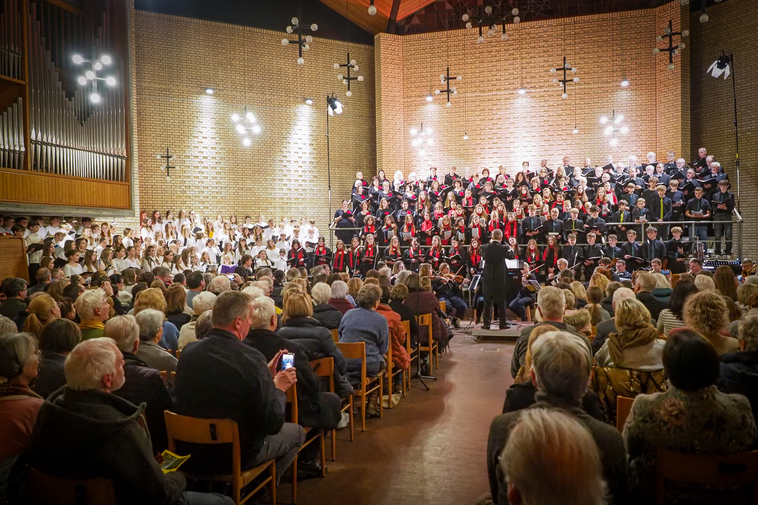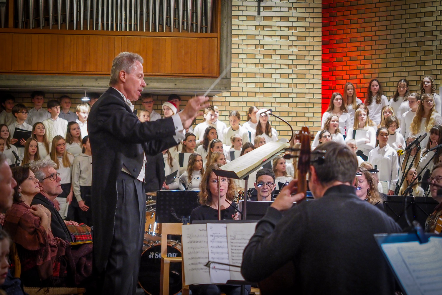 Unter dem Motto „Joy of Christmas“ vereinten sich das Vokalensemble Gaienhofen, die Kantorei und die Minikantorei der Evangelischen Schule Schloss Gaienhofen: Insgesamt 170 Schülerinnen und Schüler musizierten gemeinsam mit dem Kammerorchester Gaienhofen, Bläsern des Auenwald Brass Ensembles und Schlagwerk. Die künstlerische Gesamtleitung lag bei Dirigent Siegfried Schmidgall.