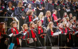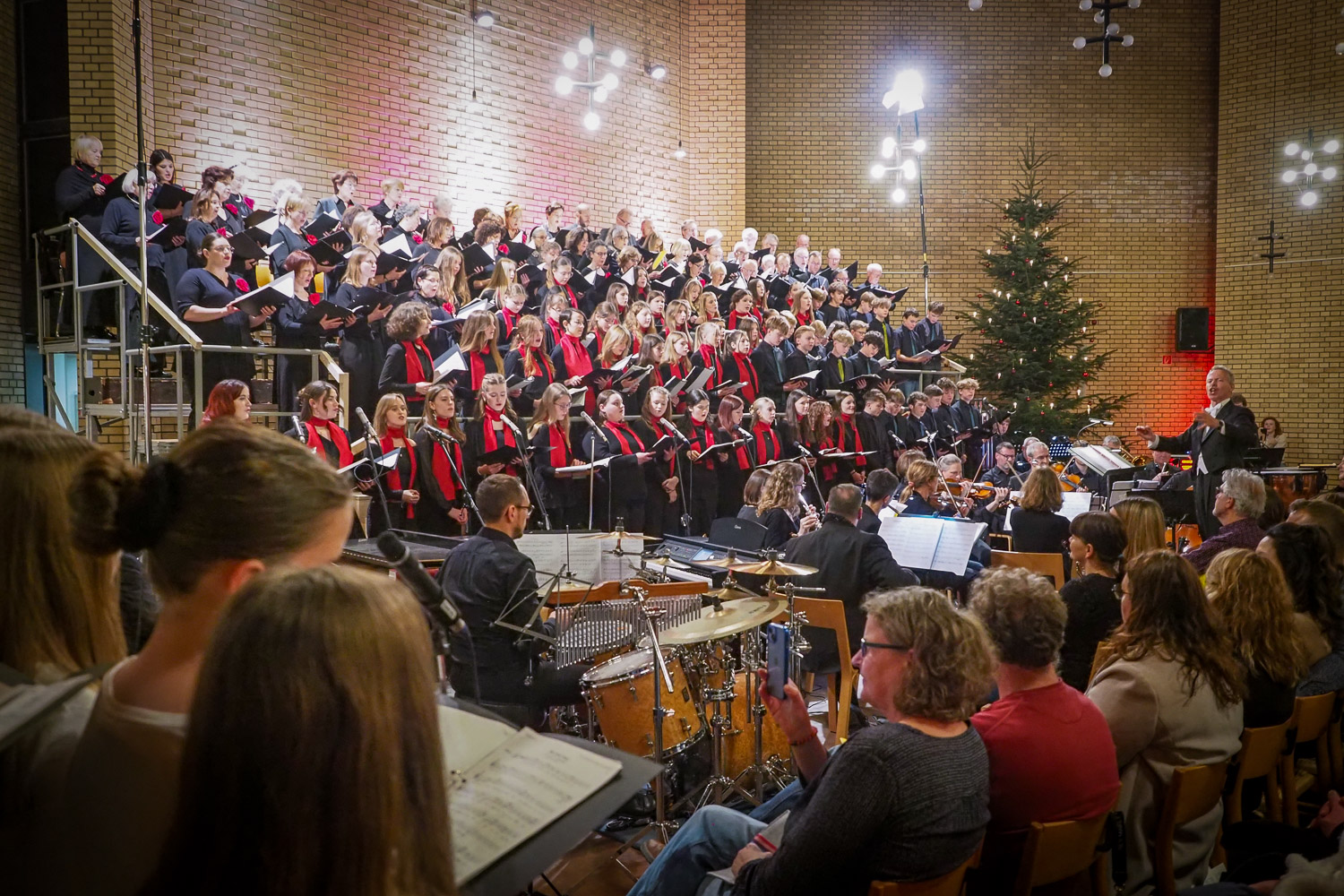 Das Programm reichte von klassischen Weihnachtsliedern über bedeutende Chorwerke bis hin zu zeitgenössischen Arrangements. Die Zuhörer erlebten eine weihnachtliche Version des „Gloria“ aus der h-moll-Messe von J.S.Bach, Chöre aus Händels „Messias“ sowie zeitgenössische Kompositionen und internationale Weihnachtsklassiker. Besonders beeindruckend war die abwechslungsreiche Kombination aus prächtigen Chorformationen, vielschichtigen a cappella-Stücken und Solobeiträgen mit fein nuancierten Stimmen und Bläsern. Dadurch entstand ein Klangbild, das sowohl majestätische Fülle als auch ruhige, besinnliche Momente zuließ.