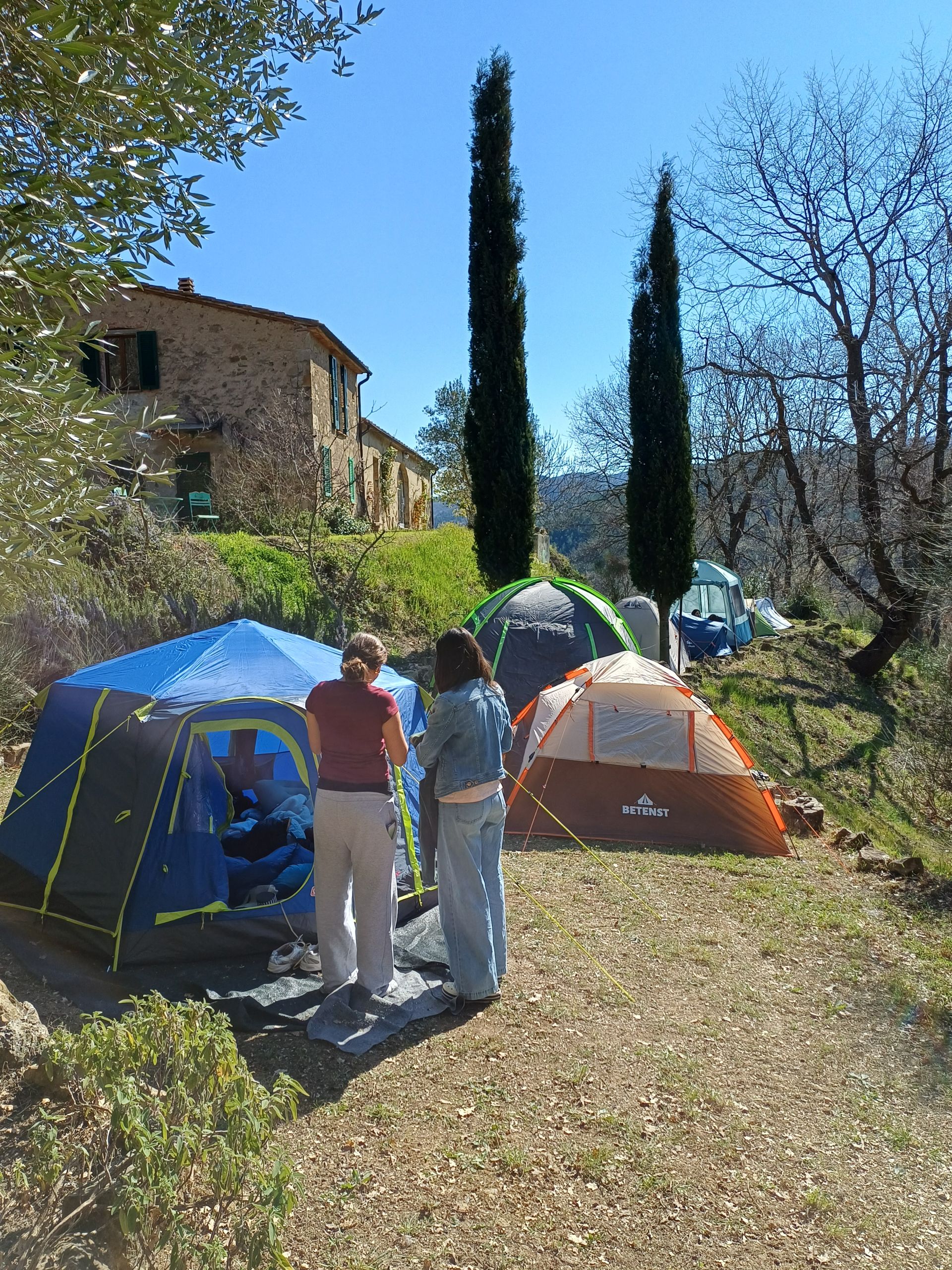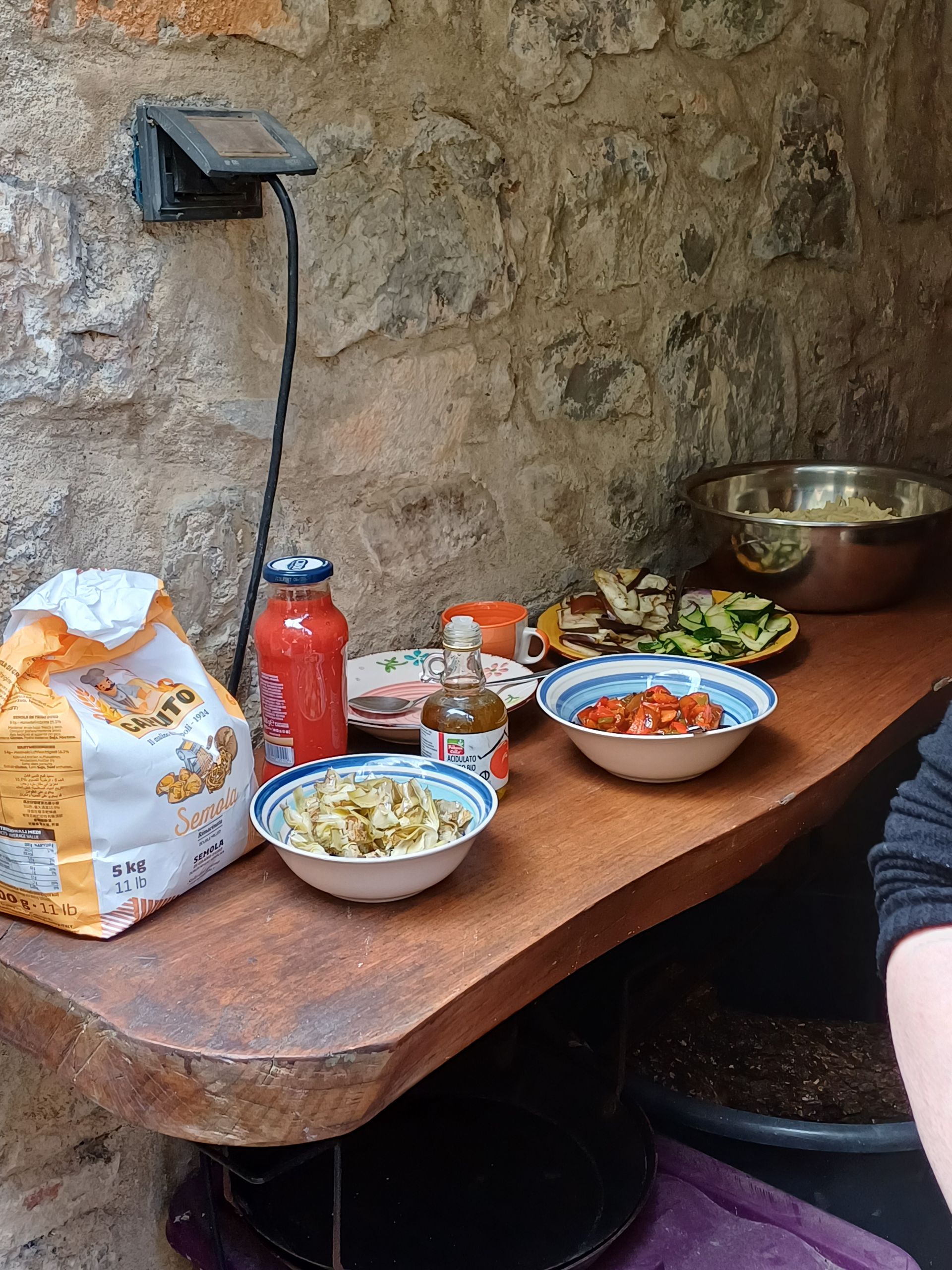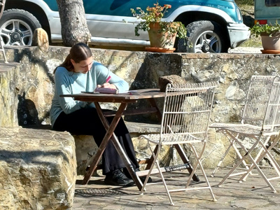 Nach der nächtlichen Busfahrt mit teils heftigem Schneetreiben sind wir in der sonnigen Toscana angekommen! Neben der Arbeit an unserem Stück steht wieder viel Theater-Basistraining auf dem Programm. Für unser leibliches Wohl sorgt dieses Jahr Teresa, unsere phantastische italienische Köchin. Am ersten Tag gab’s gleich Pizza aus dem hauseigenen Steinofen, die Teresa unermüdlich belegt und in den Ofen geschoben hat. Wir sind gespannt auf sie nächsten Tage!