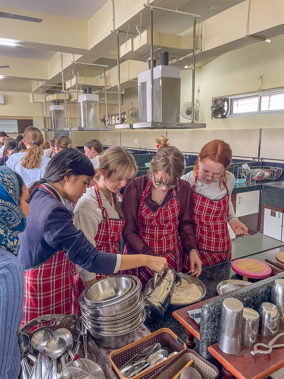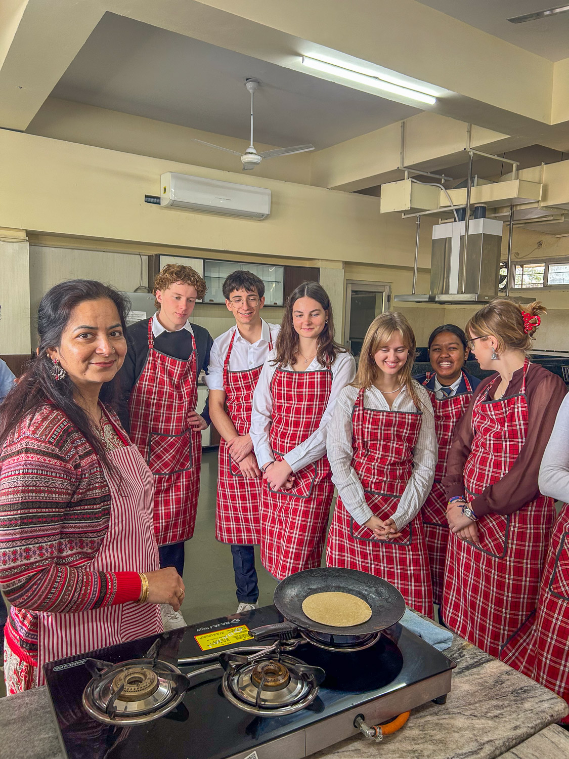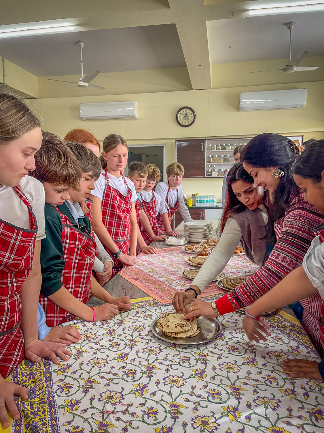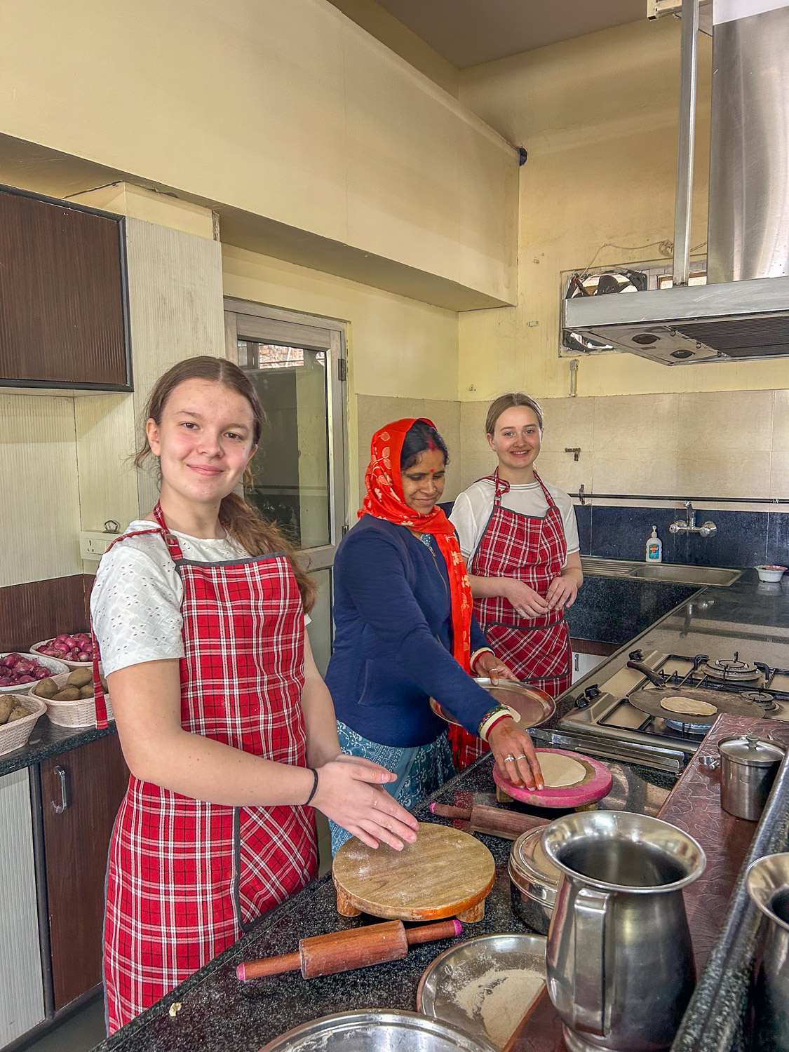 Nach der Tour hatten wir noch classes, wir 11. Klässler hatten eine Literatur class und die 7. Klässler eine Stunde Physik. Anschließend hatten wir gemeinsam einen „Chapati“-Wettbewerb (indisches Brot) beim Kochkurs – wer die rundesten Chapati macht, hat gewonnen. Auch hier hatten alle großen Spaß und haben definitiv was Neues gelernt.