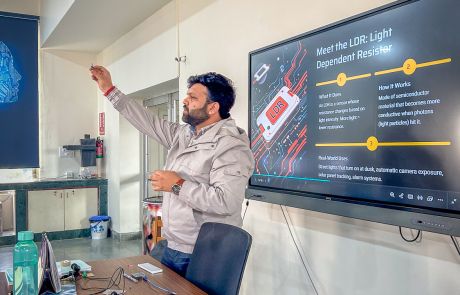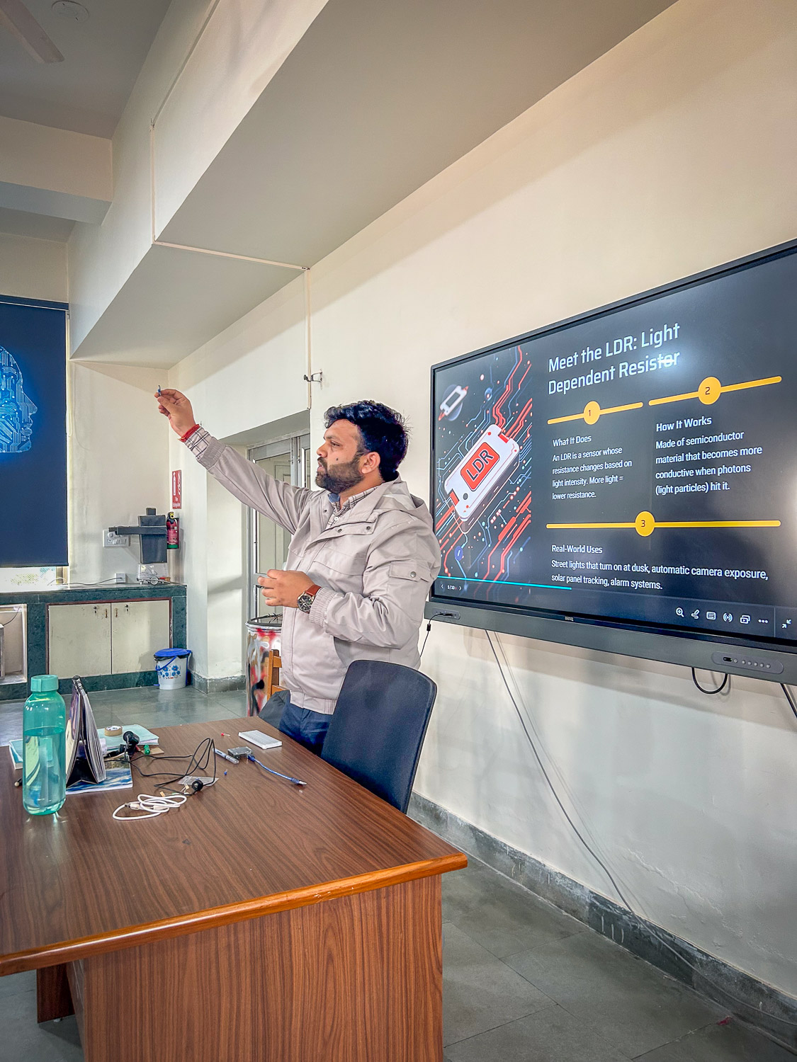 …einen AI-Workshop, während sich die Lehrerinnen mit dem Schulleiter des Mayo-College trafen. Bei dem AI-Workshop durften wir uns verschiedene Projekte von Schülern anschauen und ausprobieren, die alle selbst gebaut und programmiert wurden, wie zum Beispiel ein Roboterhund, eine Spinne oder auch ein Assistenzroboter sowie verschiedene Kameraprogramme.
