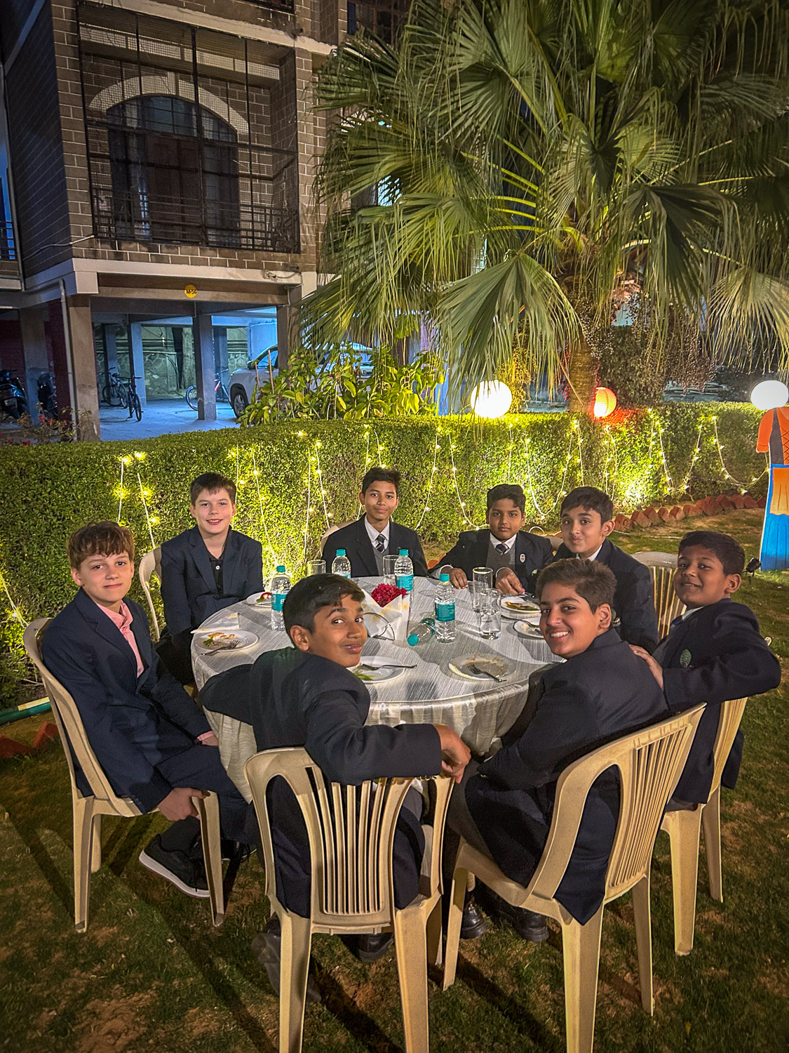 Zum Nachtisch gab es Schokoladen-Mousse, leckere Brownies, Eis mit Streuseln und eine weitere Mousse deren Namen wir vergessen haben. Nach dem Abendessen haben wir noch ein bisschen getanzt und Spaß gehabt. Anschließend sind wir mit dem Bus wieder zurück nach Ajmer gefahren. Dort angekommen sind wir alle müde ins Bett gefallen.