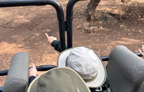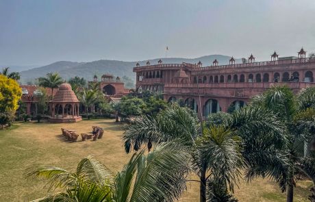 Aufgewacht sind wir in einem schönen Hotel in der Nähe des Ranthambore-Nationalparks. Schon am Morgen wurde es spannend, denn ein Mädchenzimmer bekam Besuch von einem ungebetenen Gast. Ein Affe nutzte die offene Tür, schlich ins Zimmer und stahl sich den Zucker…