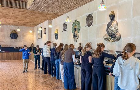Danach ging es zum Abendessen mit unseren indischen Austauschschüler:innen in ein Restaurant in der Stadt. Mit Trommeln und einer Tanzeinlage wurden wir empfangen und genau so zog es sich durch den Abend. Das Essen, Butter Chicken, war köstlich und wurde extra für uns „nicht scharf“ gekocht. Im Fokus stand jedoch weiterhin die Musik und das Tanzen. Die Austauschpartner:innen wurden einander zugeteilt, lernten sich kennen und unser Restaurantbesuch verwandelte sich schnell in eine richtige Tanzparty für alle.