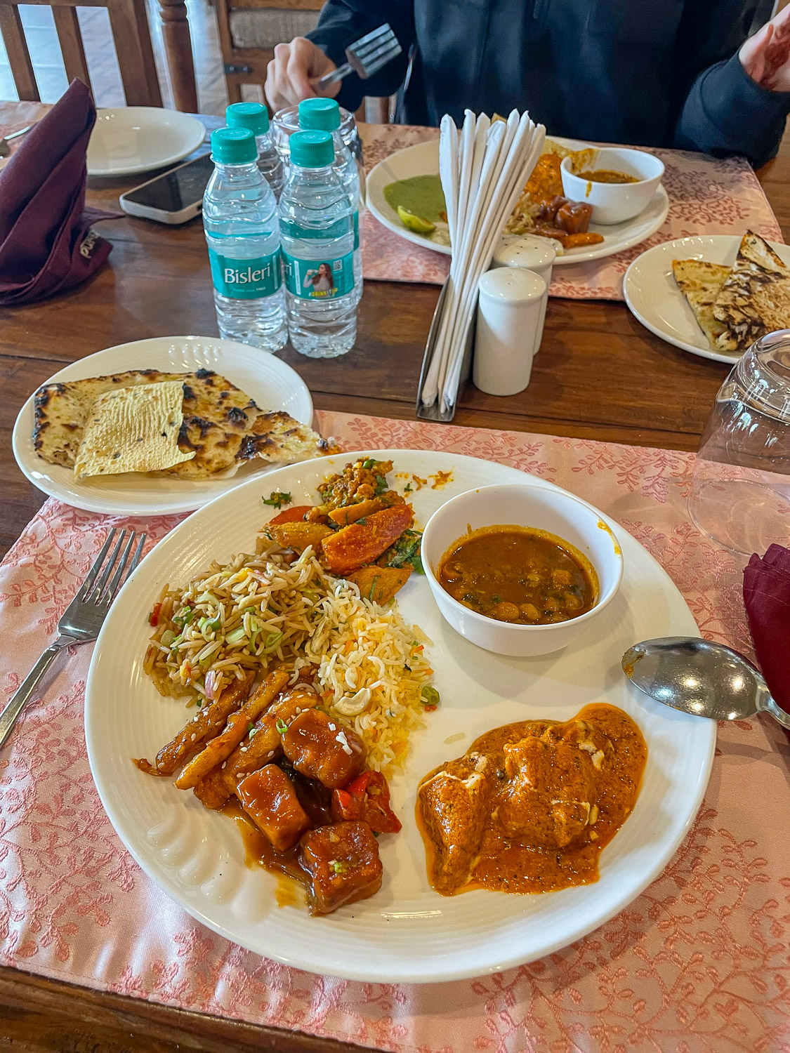 Dort konnten wir mit wunderschöner Aussicht über Ajmer unser Abendessen genießen und hatten viel Zeit, uns besser kennenzulernen. Es gab zur Vorspeise leckere Honey-Chilli-Potatoes und danach am Buffet Butter Chicken, Daal und viele andere indische Köstlichkeiten.