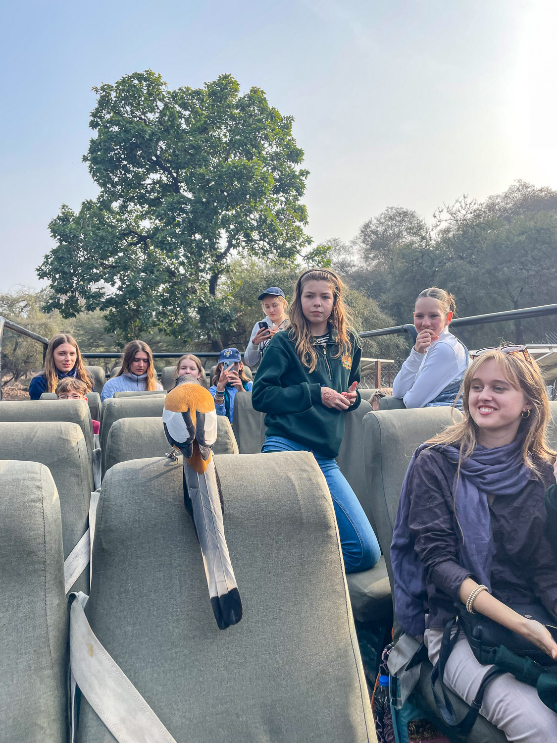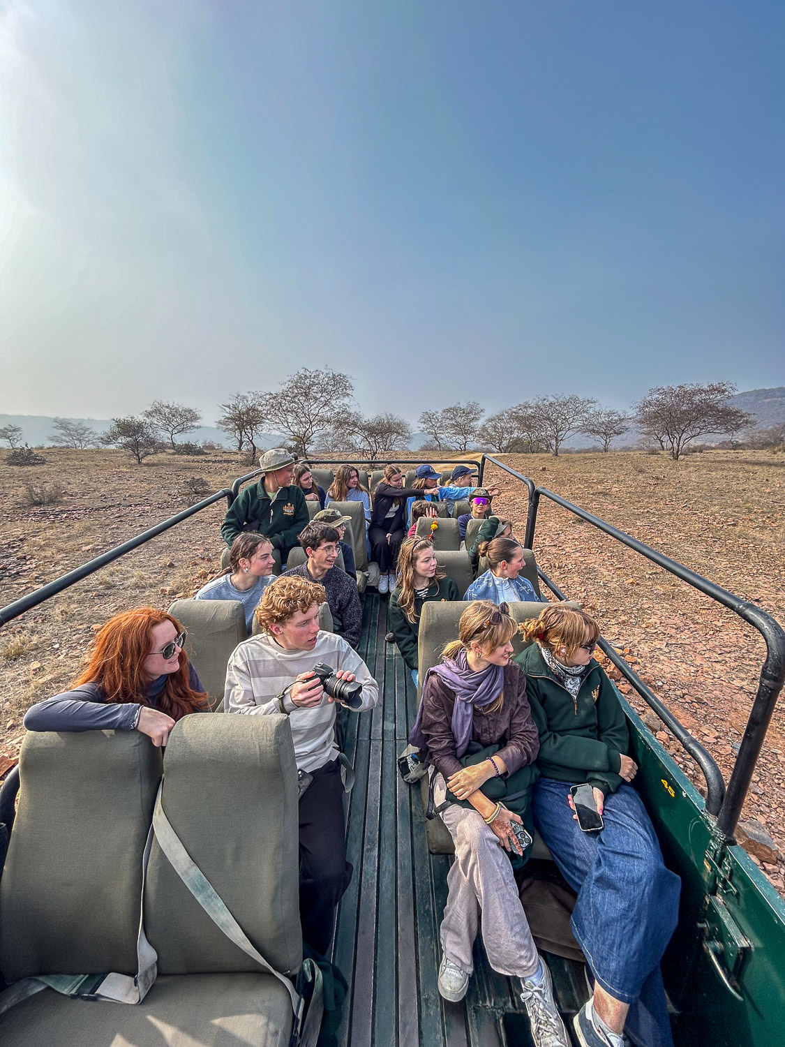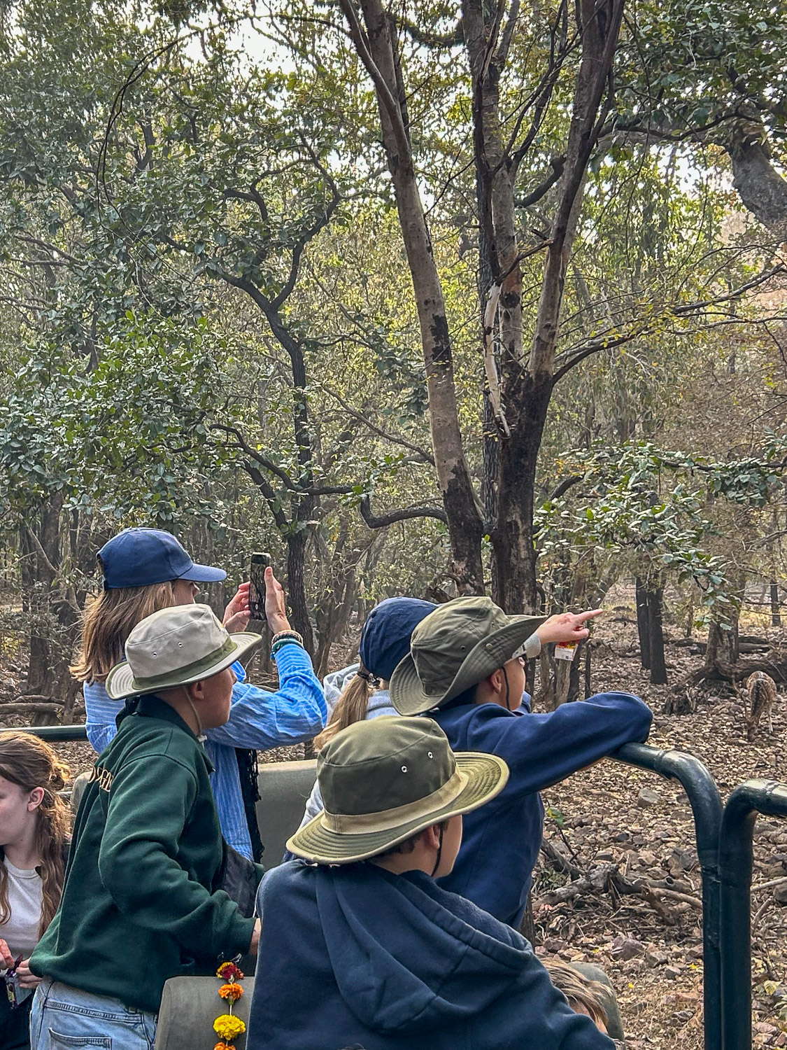 Danach sind wir mit einem sehr großen offenen Jeep auf eine Safari Tour aufgebrochen. Auf der Tour haben wir leider keine Tiger gesehen, aber wir sahen Rehe, Eisvögel, eine Eule, ein Krokodil und Affen. Die Tour hat uns sehr viel Spaß gemacht und es war spannend.