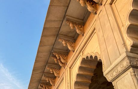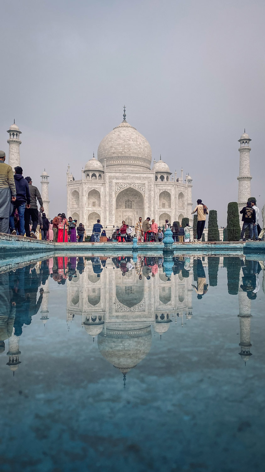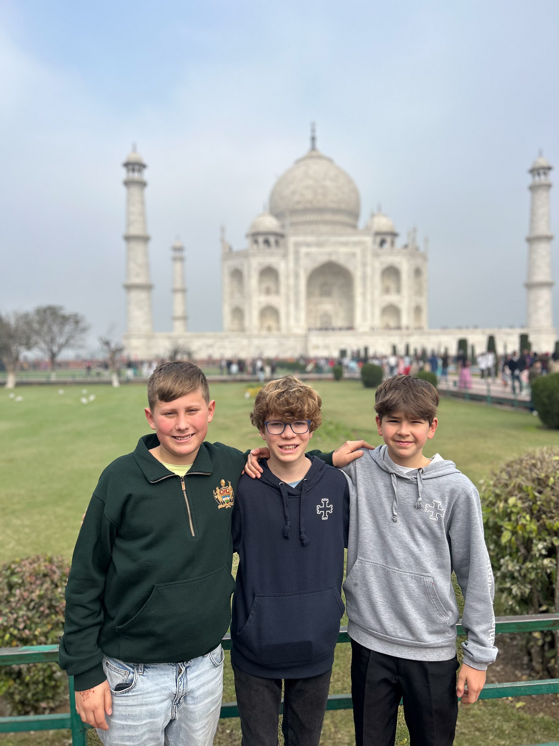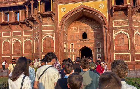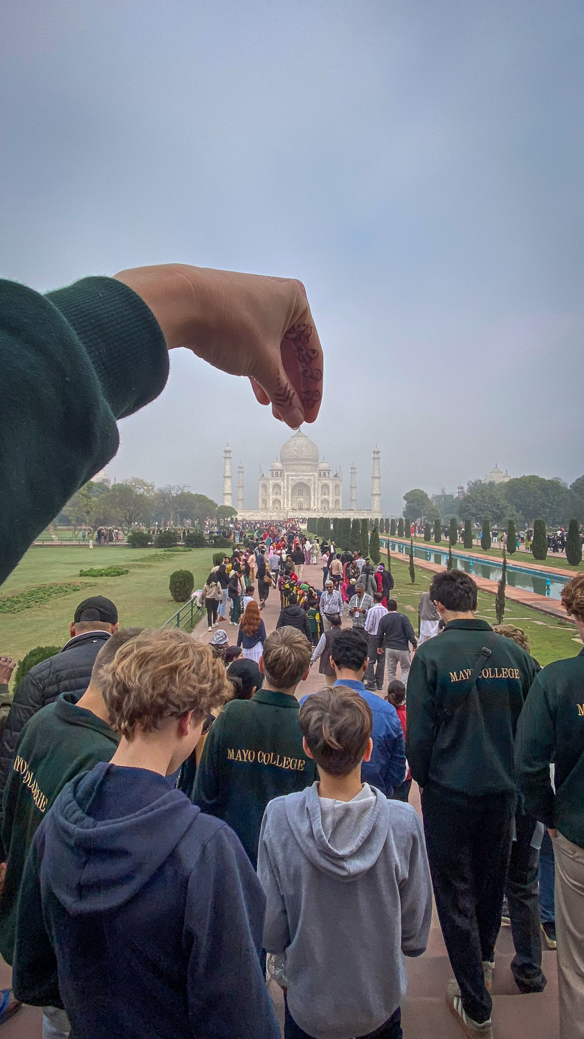 …erst gegen 12 Uhr hinzugehen. Somit konnten wir immerhin länger schlafen, was alle sehr gefreut hat. Beim Taj Mahal machten wir viele Fotos und bewunderten das schöne Gebäude von außen und auch kurz von innen. Ein Guide erzählte uns außerdem viele spannende Dinge über das Taj Mahal, wie zum Beispiel, dass der Eingang mit Schriftzeichen aus dem Koran geschmückt ist.