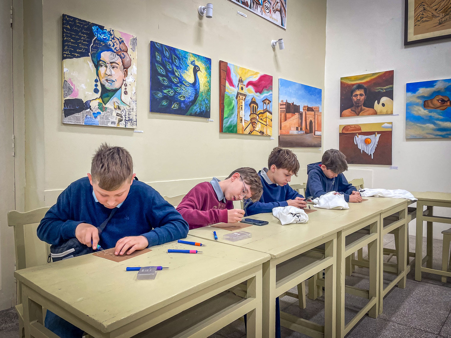 Heute hatten wir nach dem Frühstück eine Kunststunde. Dort durften wir unsere eigenen T-Shirts bedrucken. Manche haben sogar ein eigenes Motiv entworfen und auf ihr T-Shirt gedruckt. Das hat allen viel Spaß gemacht. In der Tee-Pause konnten wir uns kurz ausruhen. Einige von uns…