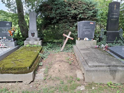 Was bleibt, wenn wir einmal nicht mehr da sein werden? Grabmale drücken den Wunsch aus, dass etwas bleibt, dass etwas an uns erinnert, wenn wir gestorben sind. Aber ein Gang über den Wiener Zentralfriedhof zeigt auch: Das gilt in aller Regel nicht für die Ewigkeit. Auch Gräber sind endlich. Der orangene Aufkleber auf dem Grabstein rechts weist darauf hin, dass das Nutzungsrecht für die Grabstelle abgelaufen ist. Diese Aufkleber sieht man gar nicht so selten. In absehbarer Zeit wird das Grab abgeräumt. Dann werden die Gebeine tiefer gelegt und ein neues Grab kommt an die Stelle. In einer Großstadt wie Wien ist das kaum anders möglich. Der Platz ist begrenzt. Aber auch auf unseren Friedhöfen ist das so üblich.